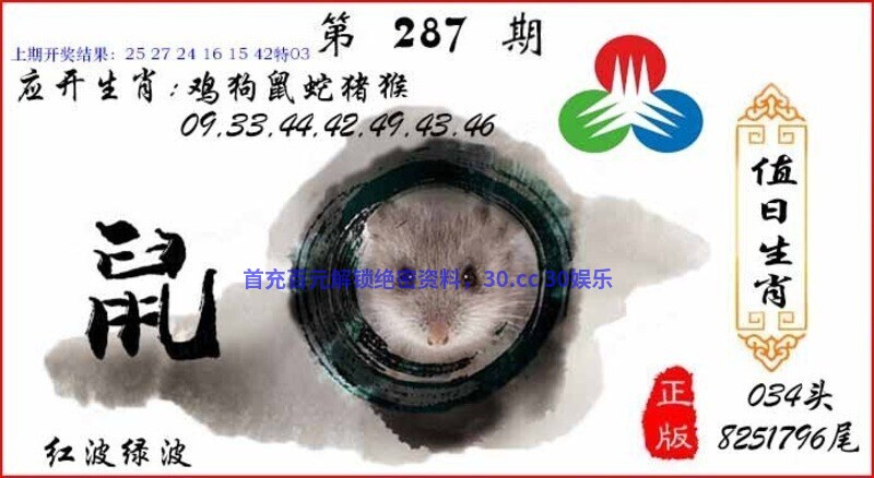 287期:九肖羊龙狗蛇马兔牛猪】开:猴34中